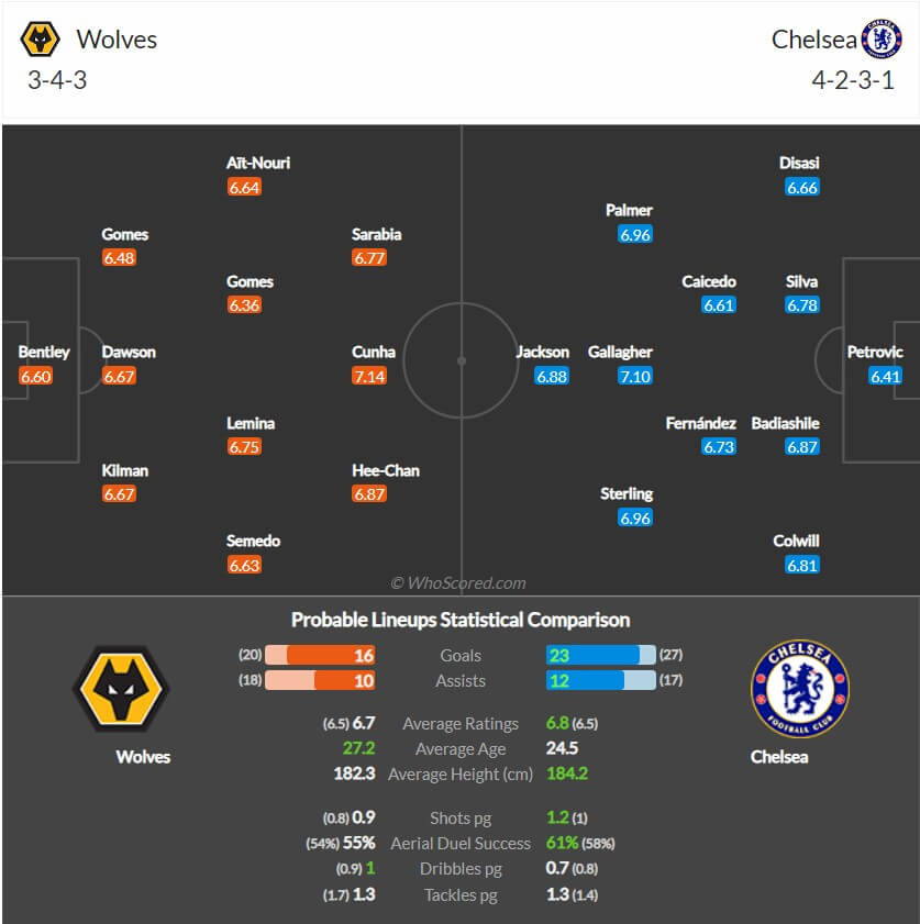 울버햄튼 대 첼시 예상 스쿼드