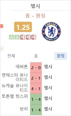 - 첼시 : 리그 10위 승점 22점 6승 4 무 7패