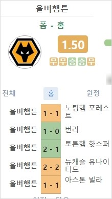 - 울버햄튼 : 리그 14위 승점 19점 5승 4 무 8패